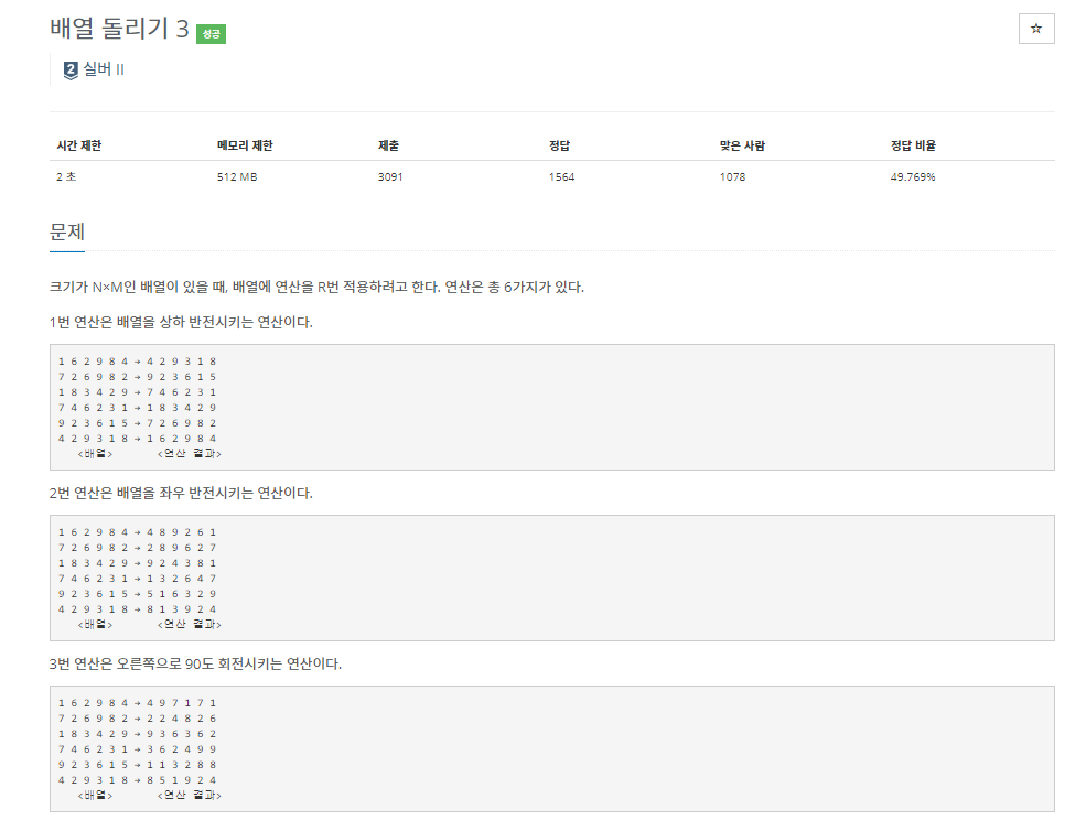 배열 돌리기 3 16935번 solved.ac 실버 2